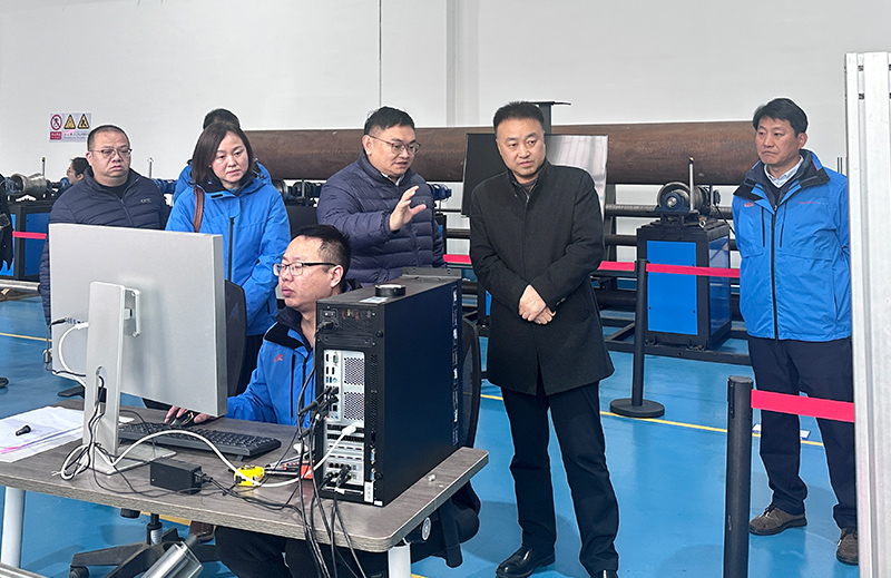 调研伊始,任小伟一行实地参观了合安院总装厂房。刘小楠详细介绍近期重点攻坚的技术成果,包括管端螺纹检测系统二代机、针对高亮金属表面的第六代高精度高动态范围长圆材3D表检设备等,直观展现了合安院在智能检测领域的技术沉淀与研发硬实力。