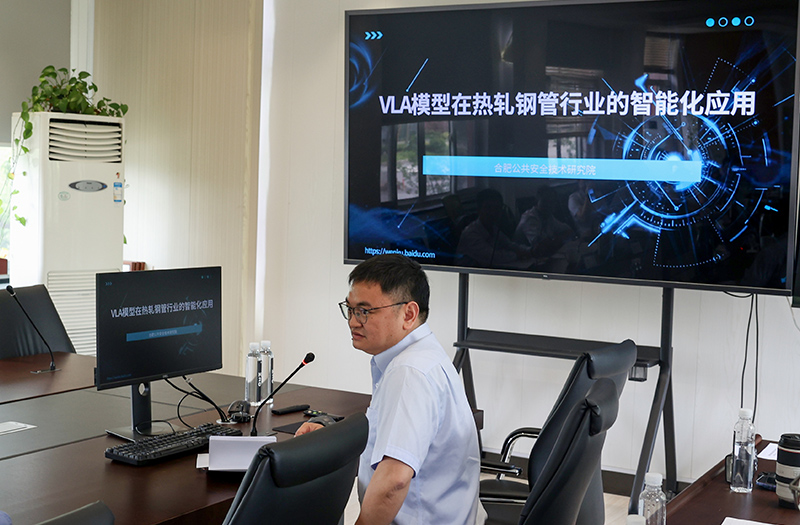 合安院党支部书记刘小楠作AI技术报告,详细介绍了VLA模型在热轧钢管行业的智能化应用,并期待双方后续以联建共建为平台,探索推动该技术在宝钢的产业化应用。在技术交流环节,双方围绕“AI算法优化”“AI技术应用落地”等议题展开热烈讨论。宝钢技术骨干结合生产实际提出需求,合安院研发团队现场回应技术解决方案,形成“需求-研发-应用”的闭环互动,为后续联合攻关奠定坚实基础。